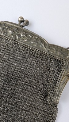 MINAUDIERE ou BOURSE en argent (800) ciselé à décor sur le fermoir d'une frise de chardons.