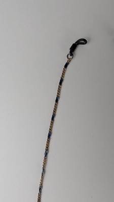 CHAÎNE DE LUNETTES en métal doré à mailles torsadées alternées de cabochons émaillés bleus.