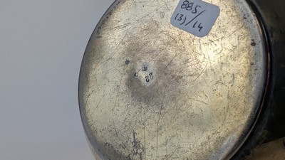 PARTIE DE SERVICE A THÉ-CAFÉ en métal doré à décor de coquilles, poignées en bois noirci comprenant une théière, une cafetière et un pot à lait.