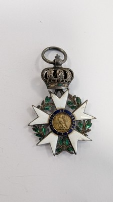 Étoile de chevalier du 3e type (Premier Empire), en argent, or et émail (éclats). Anneau lisse poinçonné au faisceau de licteur (1809-1819).