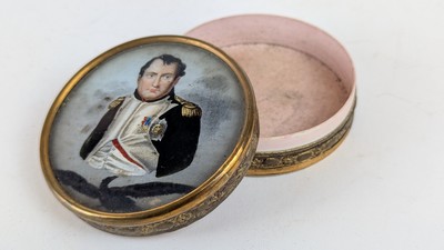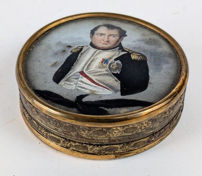 PETITE BOÎTE dite à pralines en carton, le couvercle à décor fixé sous verre de Napoléon Ier en buste sur un aigle.