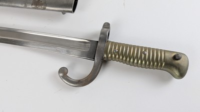 BAÏONNETTE Chassepot modèle 1866 de marine ou d’infanterie de marine. Lame Yatagan. Fourreau nickelé.