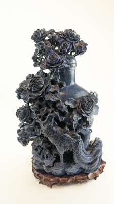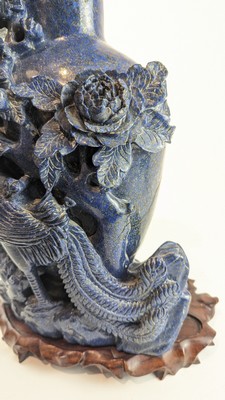 GRAND VASE plein en lapis lazuli sulpté de branchage et phénix