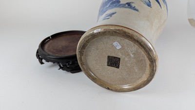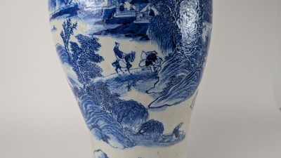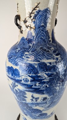 VASE en porcelaine émaillée bleu et blanc à décor de village de montagne animé.