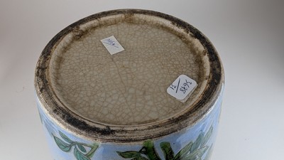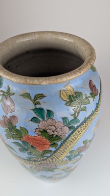 VASE ovoïde en grès craquelé à décor émaillé polychrome d'un dragon brun et d'un dragon jaune dans des branchages de lotus.