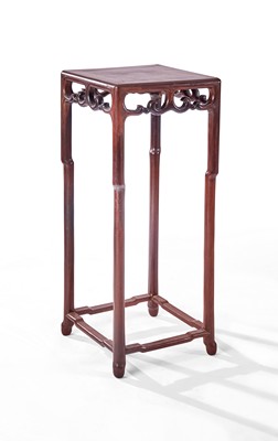 SELLETTE à plateau carré en bois mouluré à décor d'entrelacs en ceinture et reposant sur des pieds balustre réunis par des barres d'entretoise.