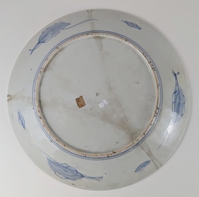 PLAT en porcelaine émaillée à décor Imari de motifs floraux en réserve. Le bassin à décor en réserve de trois pivoines. Etiquette ancienne au revers.