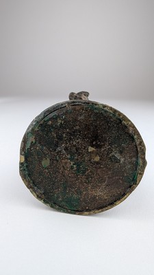 KANNON (ou GWAN IN) en bronze laqué or, présentée debout les mains l'une sur l'autre, sur une base lotiforme.