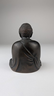 BOUDDHA assis en position de la sérénité, en bronze à patine brune.