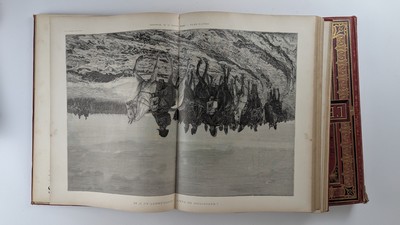 4 tomes en 2 vol. in folio, reliure en en cartonnage rouge historié d’éditeur, signée G. HENON Rel. (accidents aux coiffes et aux mors)....
