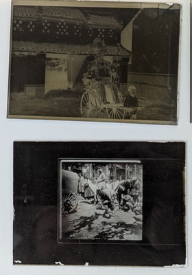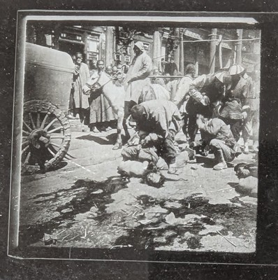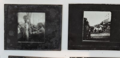 BOÎTE d'environ vingt-deux plaques de photographies en positif représentant des scènes de vie, de châtiment et d'exécution dont écorché vif en Chine à la fin du XIXe siècle.