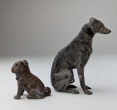 L'un représentant un lévrier asssis, l'autre un carlin assis.