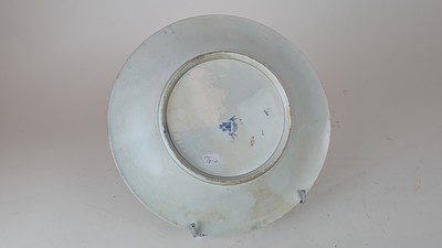 ASSIETTE en faïence émaillée polychrome à décor de corne d’abondance, fleurs, oiseaux et papillons.