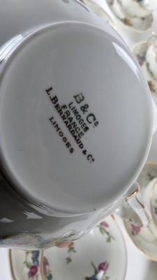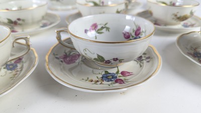 SERVICE A THE en porcelaine émaillée polychrome à décor de semis de fleurs comprenant une théière, douze tasses et douze soucoupes.