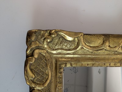 MIROIR cintré en partie haute dans un cadre en bois sculpté et doré à fronton feuillagé.