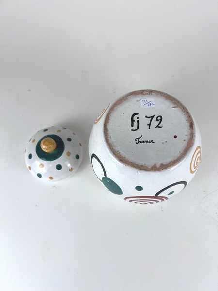 Pot couvert ; la base ovoïde, le couvercle bombé et la prise sphérique.