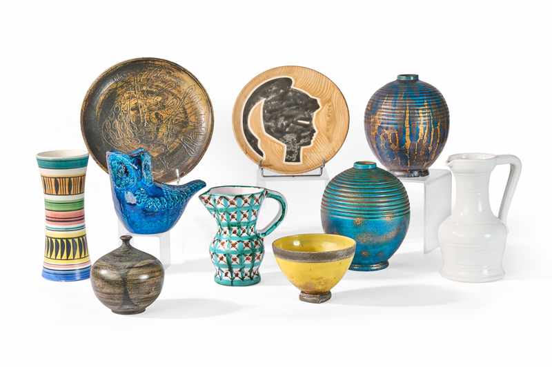 VASE BOULE à col soliflore en céramique émaillée noir et gris à motifs de cercles concentriques.