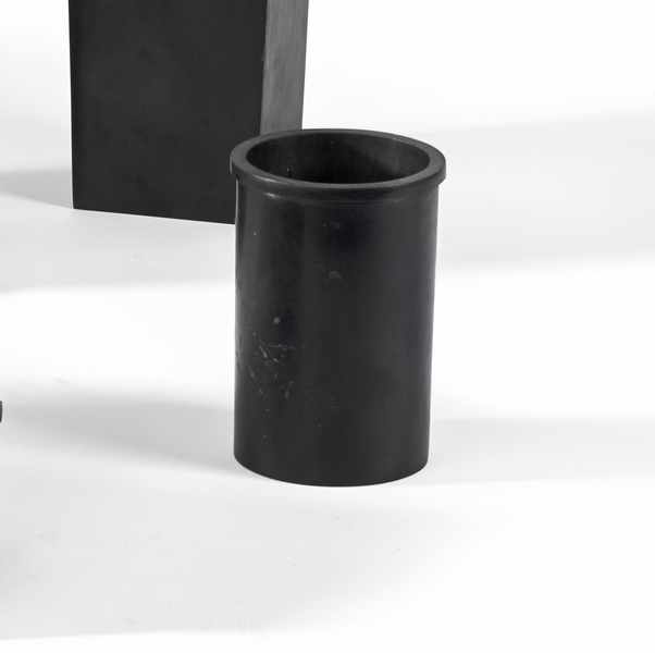 Epreuve en bronze à patine noire de forme rouleau à col ourelé.