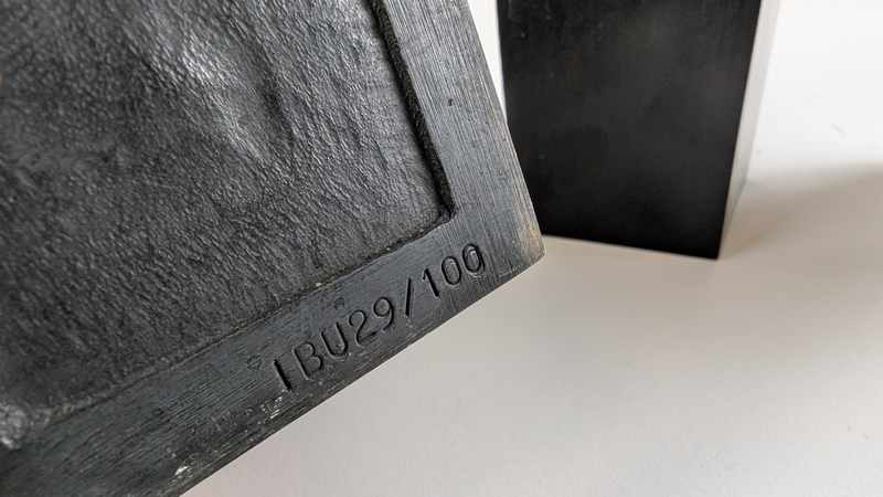 Epreuves en bronze à patine noire de forme rectangulaire à col ourelé.