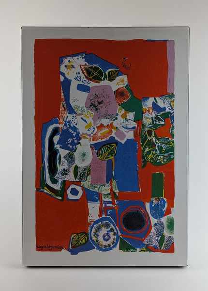 PLAQUE sur trépied en tôle émaillée, datée et numérotée 317/1200 au dos.