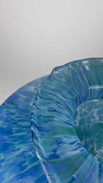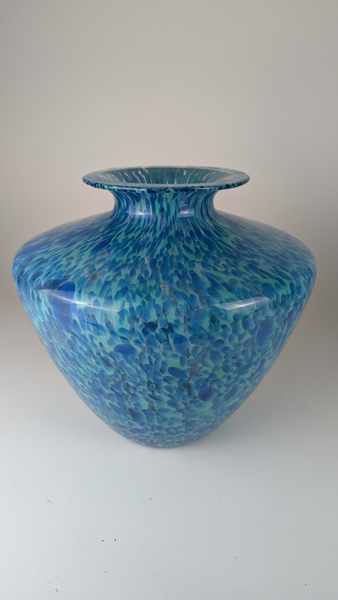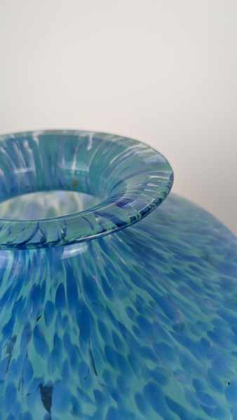VASE balustre en verre soufflé marmoréen bleu turqoise.
