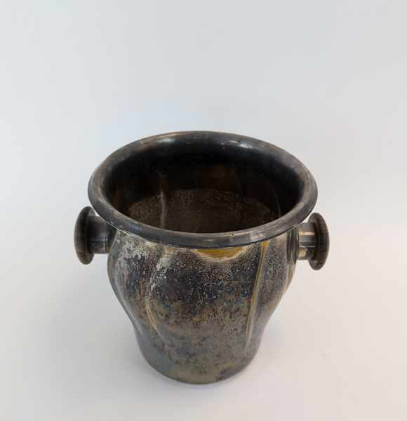 SEAU A CHAMPAGNE en métal argenté de forme balustre à côtes torses, col ourlé et deux anses à boutons en noyer.