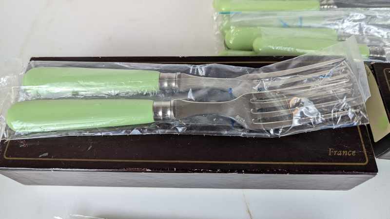 PARTIE DE MÉNAGERE en métal argenté, modèle Cambridge, à manche en résine teinté vert-d'eau, comprenant 36 pièces, soit :