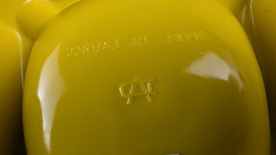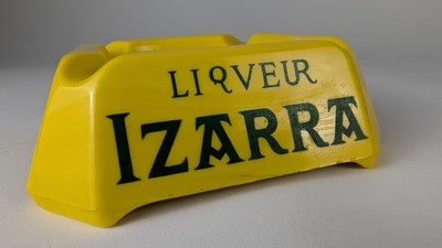 CENDRIER publicitaire en céramique jaune marqué en vert Liqueur Izarra.