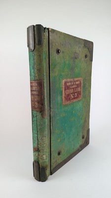 In-folio de 400 p. reliure en épais carton teinté vert et importants renforts en bronze, deux pièces de titres dorées sur percaline rouge (état d'usage), de la Manufacture de Registres Emile Marty à Bordeaux.