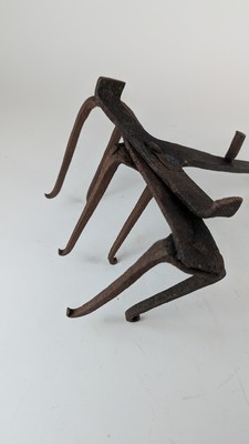 RÉCHAUFFEUR DE TALOA en fer forgé, à trois paires de branches sur plateau tournant et piétement tripode à long manche.