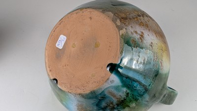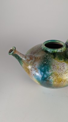 PETITE PEGARRA en terre cuite émaillée en coulure vert, jaune et brun. Signée.