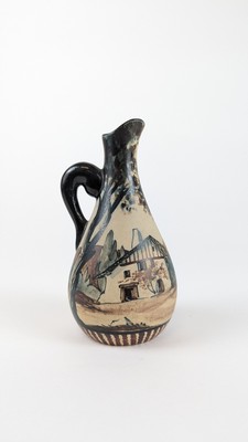 VERSEUSE en grès émaillé polychrome à décor d'une bergère.