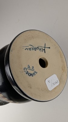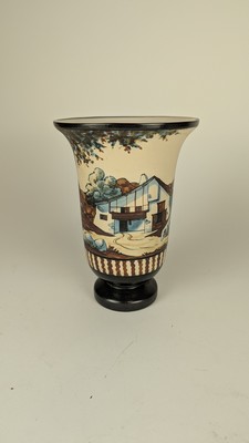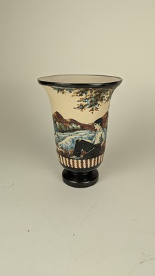 VASE CORNET en grès émaillé polychrome à décor sur la panse d'un berger et ses brebis.
