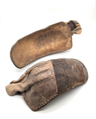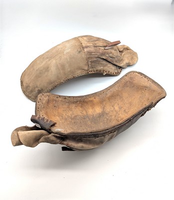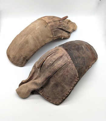 PAIRE DE GANTS DE REBOT en cuir et toile.