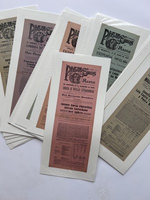 ENSEMBLE DE 53 AFFICHETTES de couleurs ou placards avec LES NOVILLADAS de Juanito Jimenez, Luis Castro et Pedro Meja, Marques de santa Apa. p 402.