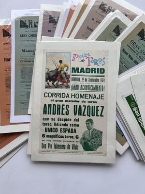 ENSEMBLE DE 58 AFFICHES lithographiées en couleurs comprenant victor Mendez, andres vazquez, gregorio sanchez, Barrera, bienvenida.