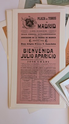 ENSEMBLE DE 62 AFFICHES lithographiées en couleurs de 1897 à 1993 sur la plaza de toros de Sevilla, comprenant les diférentes corridas avec pour les premières Antonio Reverte Jimenez et Emilio Torres et divers.