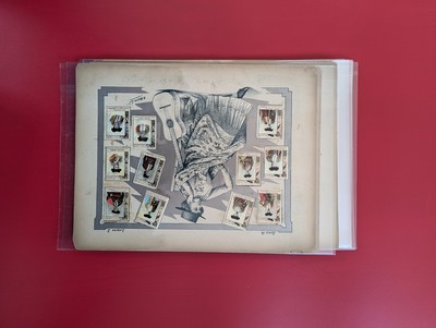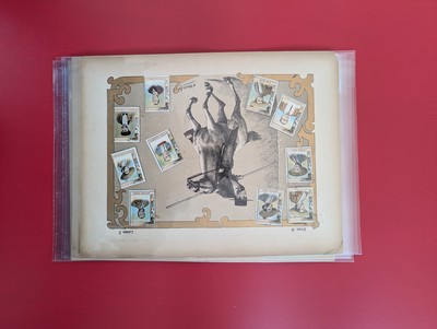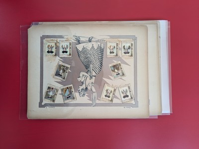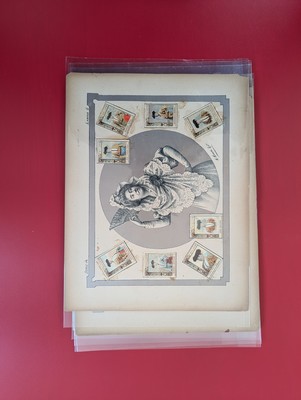 SUITE DE 135 VIGNETTES des plus grands toreros du XIXe siècle, contrecollées sur 14 planches des séries 14 et 16 llithographiées.