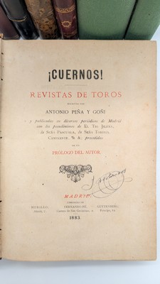 - A. PEÑA y GOÑI, Cuernos ! Revista de Toros. Madrid, Murillo ; Fé ; Guttenberg, 1883. Grand in-8, 387pp. ½ chagrin brun de l'époque, dos lisse.