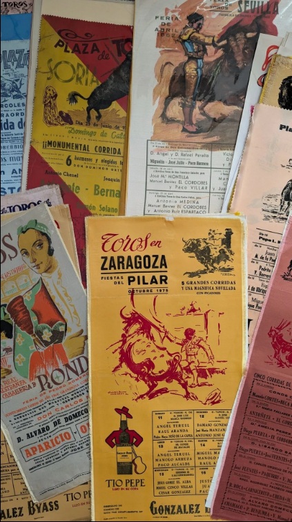 ENSEMBLE DE 59 AFFICHES OU PLACARDS sur soie polychrome, Huesca 1971, Morillo, Mexique 1927, et divers