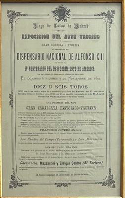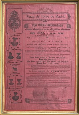 - 24 octobre 1905 : Joaquin Navarro (Quinito), José Garcia (Algabeno), Ricardo Torres (Bombita), Rafael Molina (Lagartijo), Rafael Gonzalez (Machaquito), Antonio Boto (Regaterin) ; 47 x 32,5 cm.