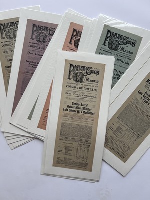 ENSEMBLE DE 53 AFFICHETTES de couleurs ou placards avec LES NOVILLADAS de Juanito Jimenez, Luis Castro et Pedro Meja, Marques de santa Apa. p 402.