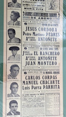 ENSEMBLE DE 43 AFFICHES lithographiées en couleurs imprimées sur soie avec Gran plaza de toro, santa maria, plaza de hulva de 1894 à 1961