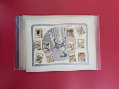 SUITE DE 135 VIGNETTES des plus grands toreros du XIXe siècle, contrecollées sur 14 planches des séries 14 et 16 llithographiées.