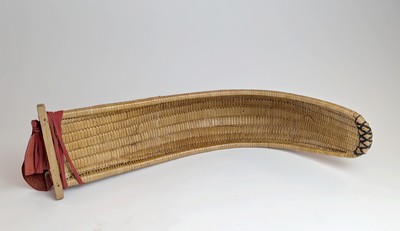 PETIT GANT DE CHISTERA en rotin et cuir rouge.