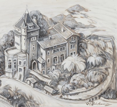 Lavis d'encre et gesso sur isorel, signée en bas à droite et titrée au dos, avec tampon de l'artiste.