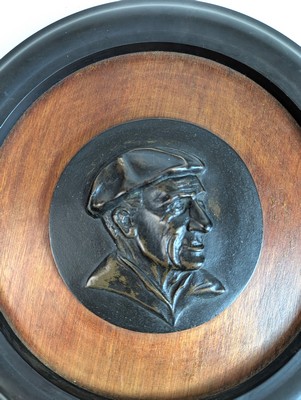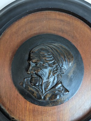 Épreuves en bronze avec traces de signatures montées dans des cadres en bois en tondo.