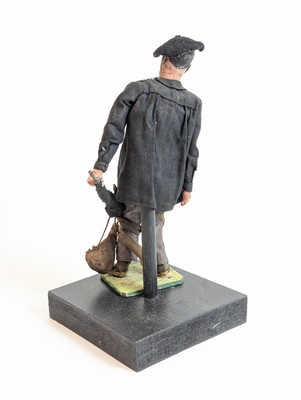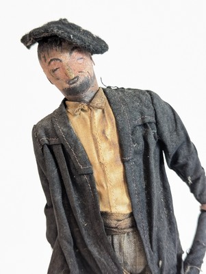 FIGURINE en tissu représentant un personnage avec béret, gourde et parapluie.
