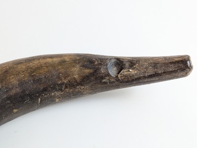 CORNE A SEL de berger, à monture en fer, utilisée pour transporter le sel au troupeau en estive.