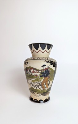 VASE balustre en grès émaillé, à décor de danseurs basques avec zamalzain et berger avec son troupeau, frises géométriques sur l'épaule et le col.